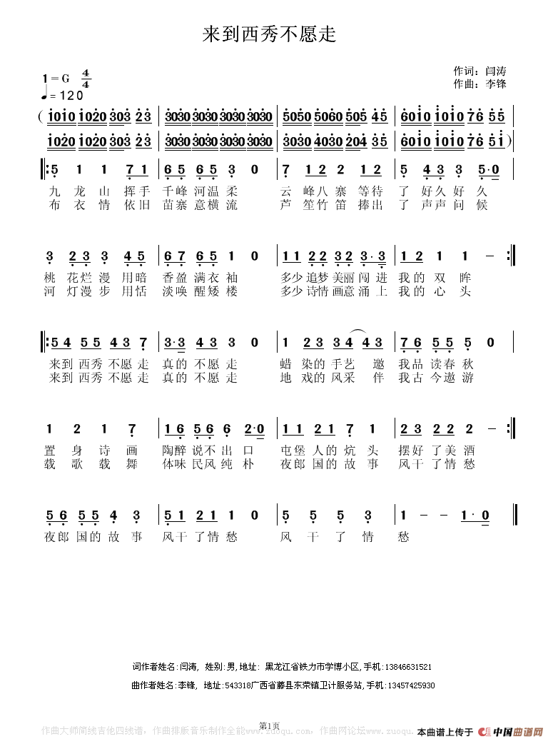 关于《来到西秀不想走》曲谱的评论
