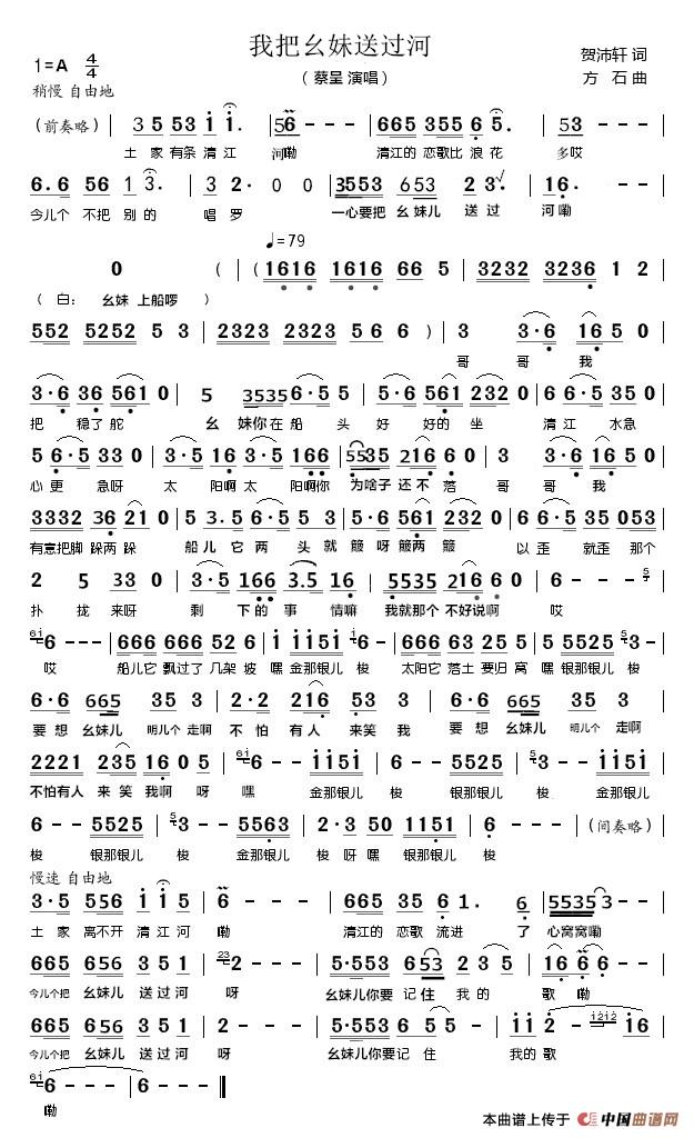 关于《我把幺妹送过河》曲谱的评论