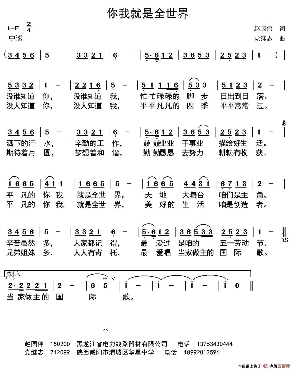 关于《你我就是全世界》曲谱的评论