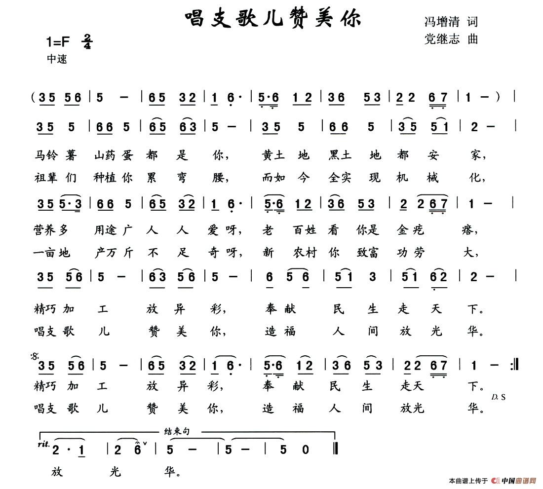 关于《唱支歌儿赞美你》曲谱的评论