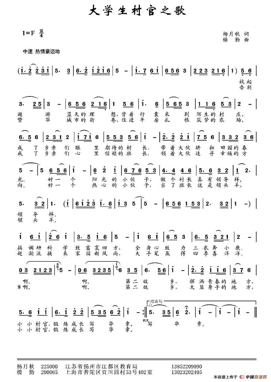 关于《大学生村官之歌 》曲谱的评论