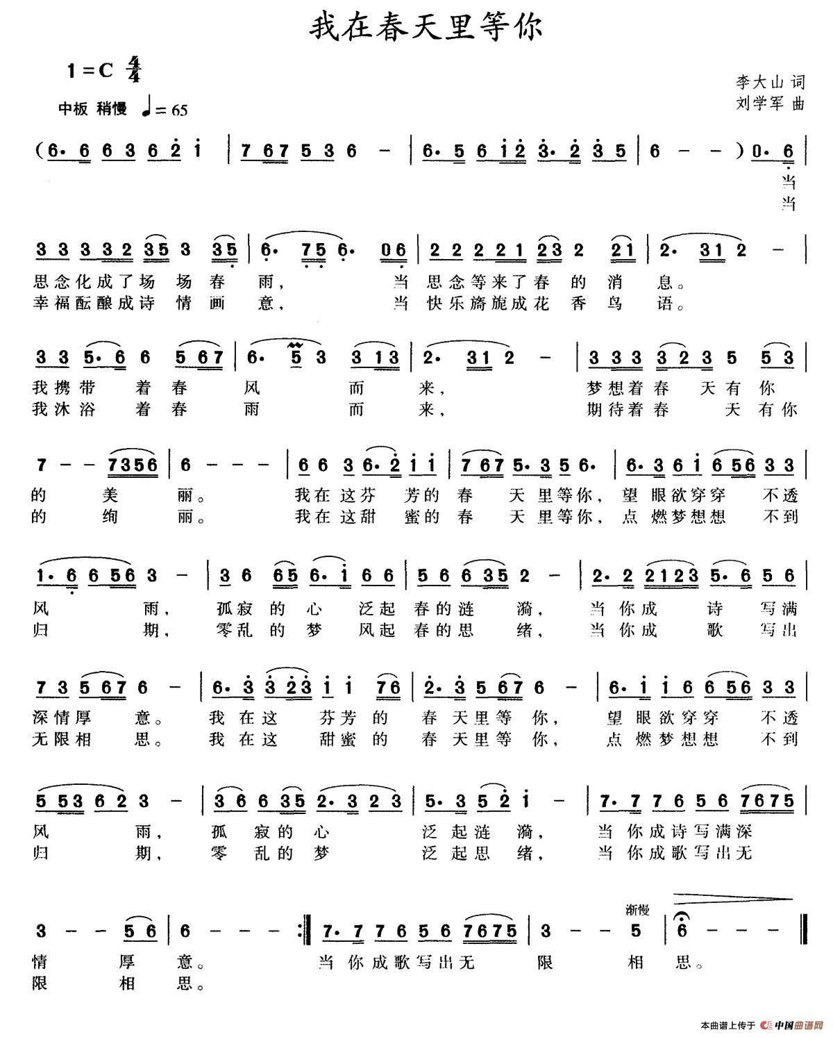 关于《我在春天里等你》曲谱的评论