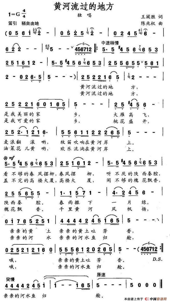 当前位置: 首页 民歌曲谱 七字歌名 黄河流过的地方(王阐胜词 陈兆权曲)