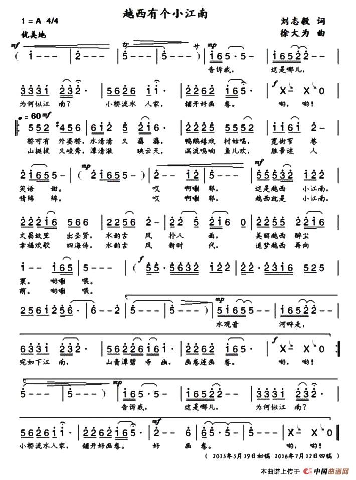 关于《越西有个小江南》曲谱的评论