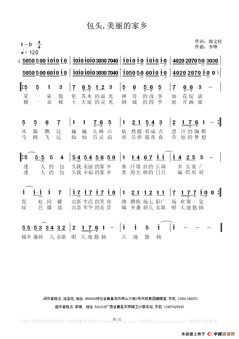 作词:池宝柱   作曲:李锋(不老锋)   来源:原创   上传:李锋(不老锋)   日期:2017-05-17   浏览次数: