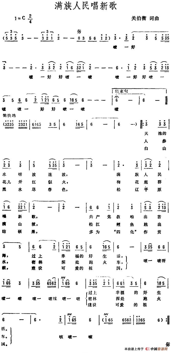 关于《满族人民唱新歌》曲谱的评论