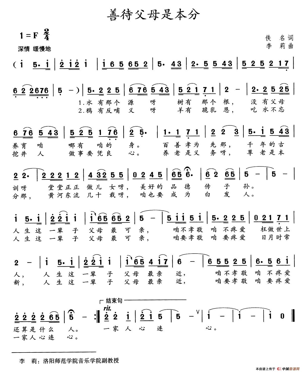 关于《善待父母是本分》曲谱的评论