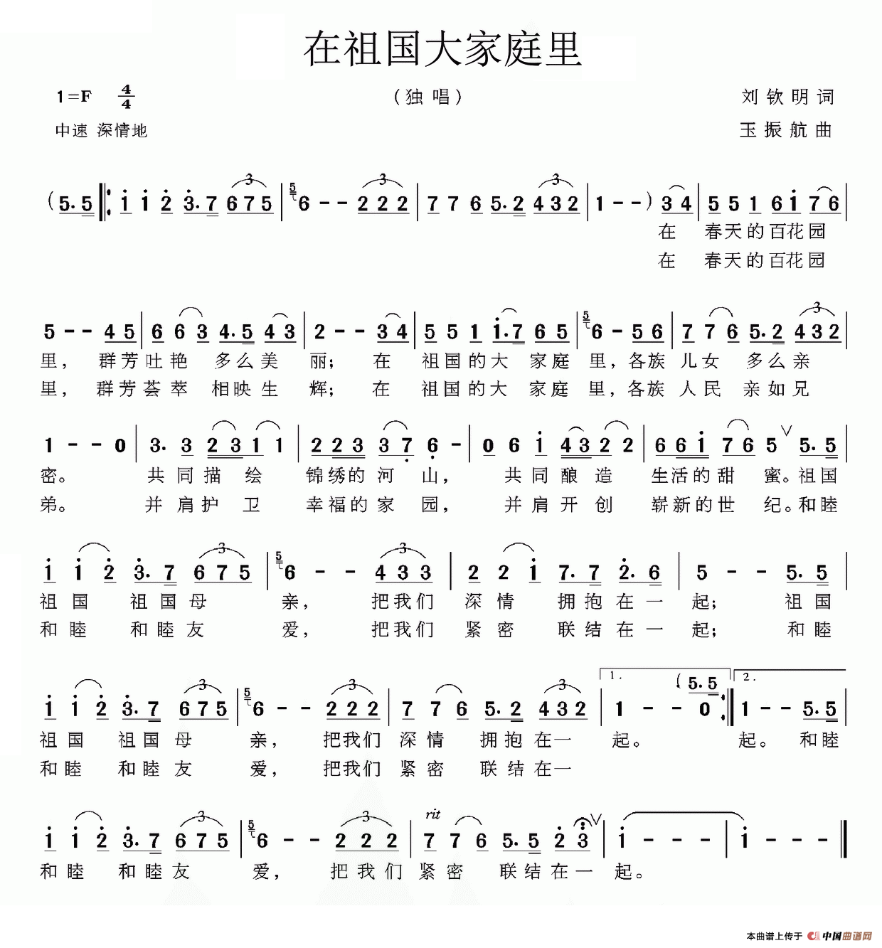 关于《在祖国大家庭里》曲谱的评论