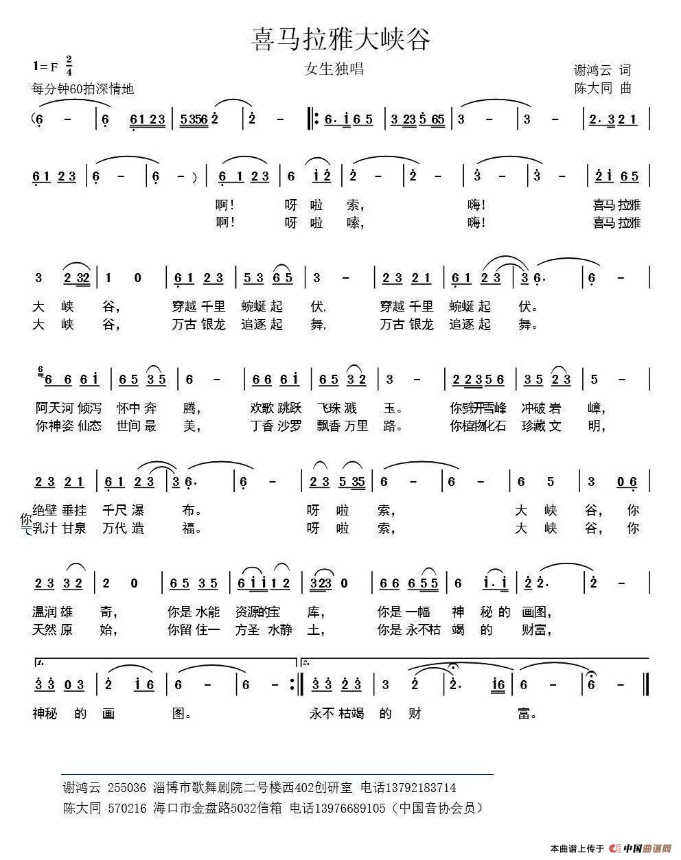 关于《喜玛拉雅大峡谷》曲谱的评论