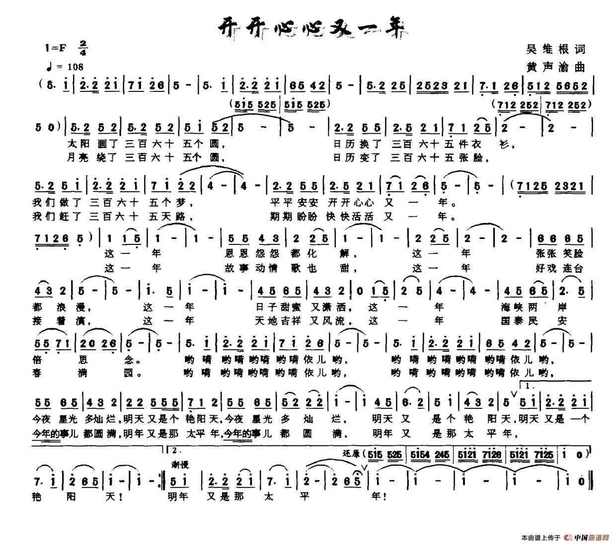 关于《开开心心又一年》曲谱的评论