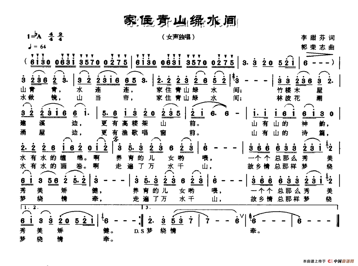 提示:在曲谱图片上单击右键,选择“图片另存为...”即可将曲谱保存到您的电脑中,打印时候可将图片插入到WORD中,调整合适大小打印即可。