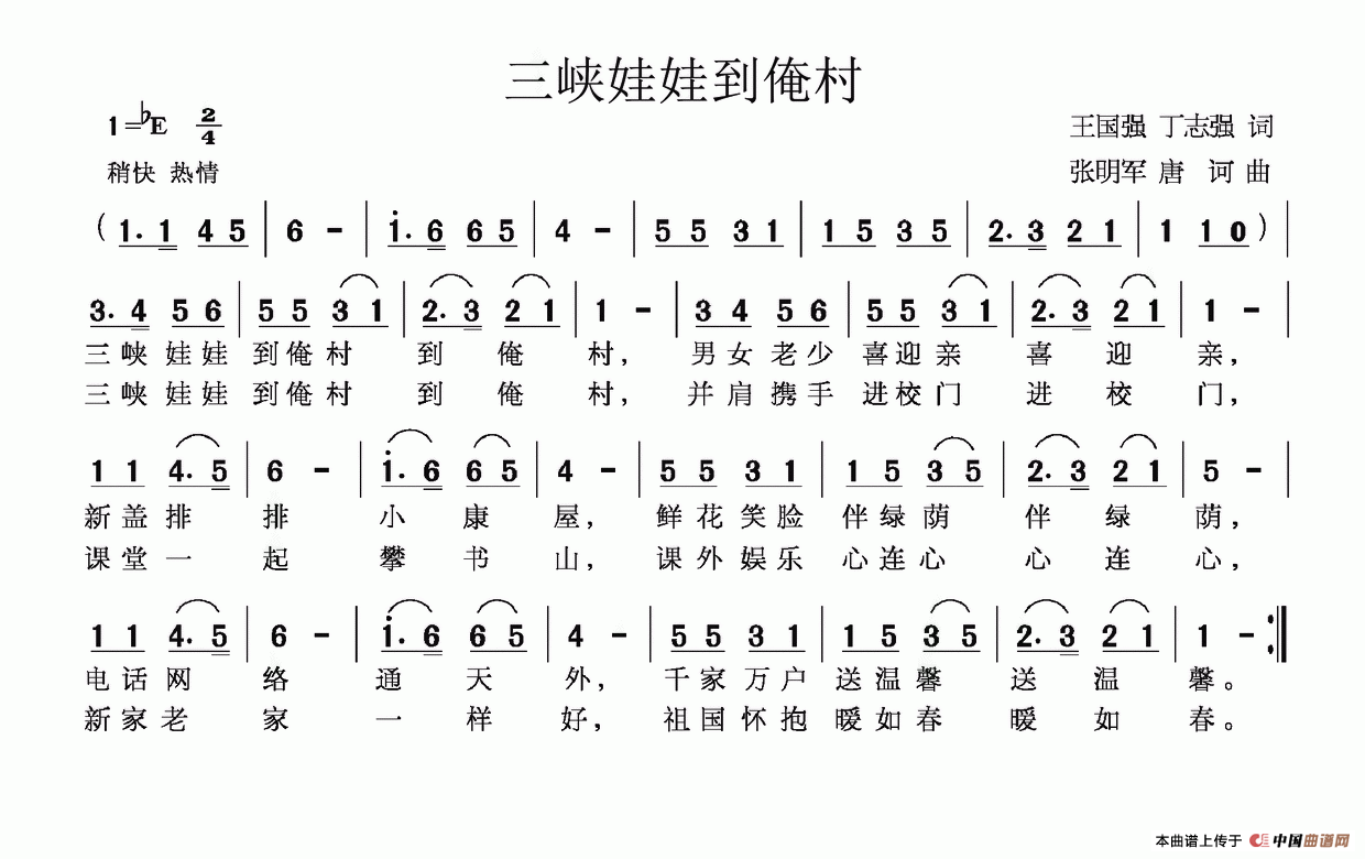 关于《三峡娃娃到俺村》曲谱的评论