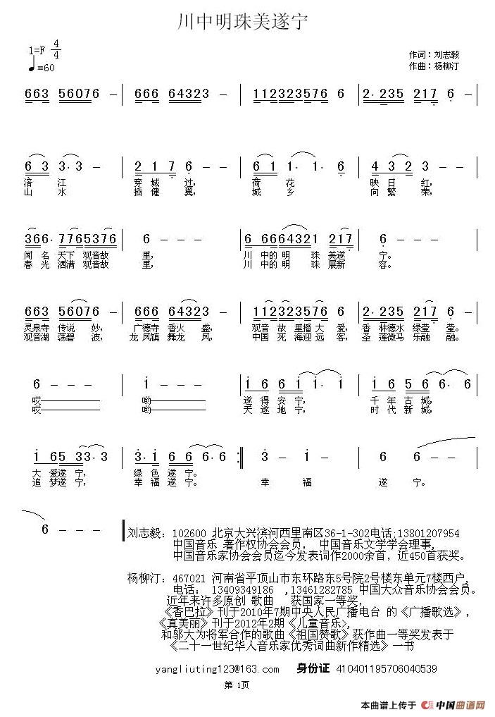 关于《川中明珠美遂宁》曲谱的评论