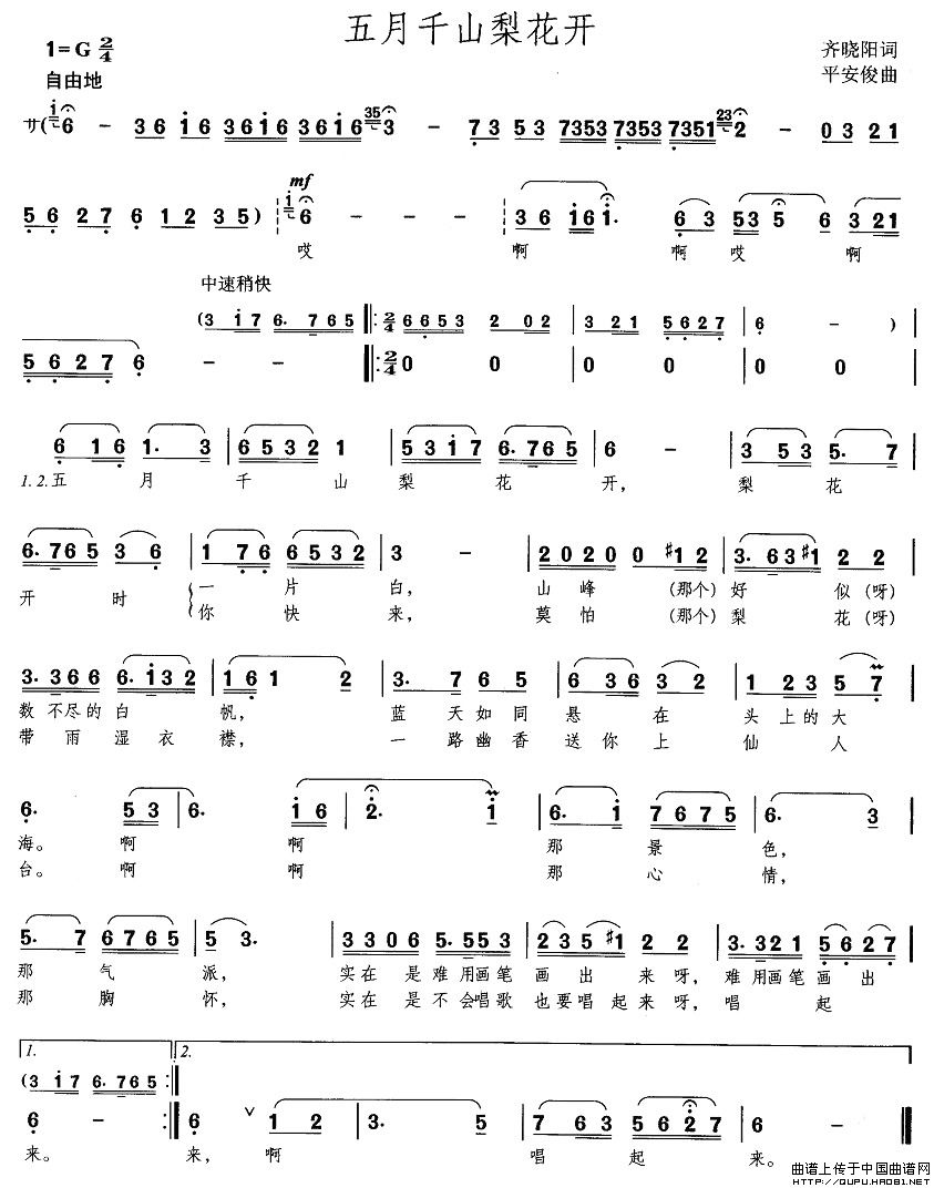 关于《五月千山梨花开》曲谱的评论