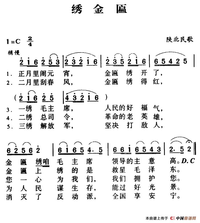 二月里刮春风,金匾绣得红, 金匾上绣的是,救星毛泽东;