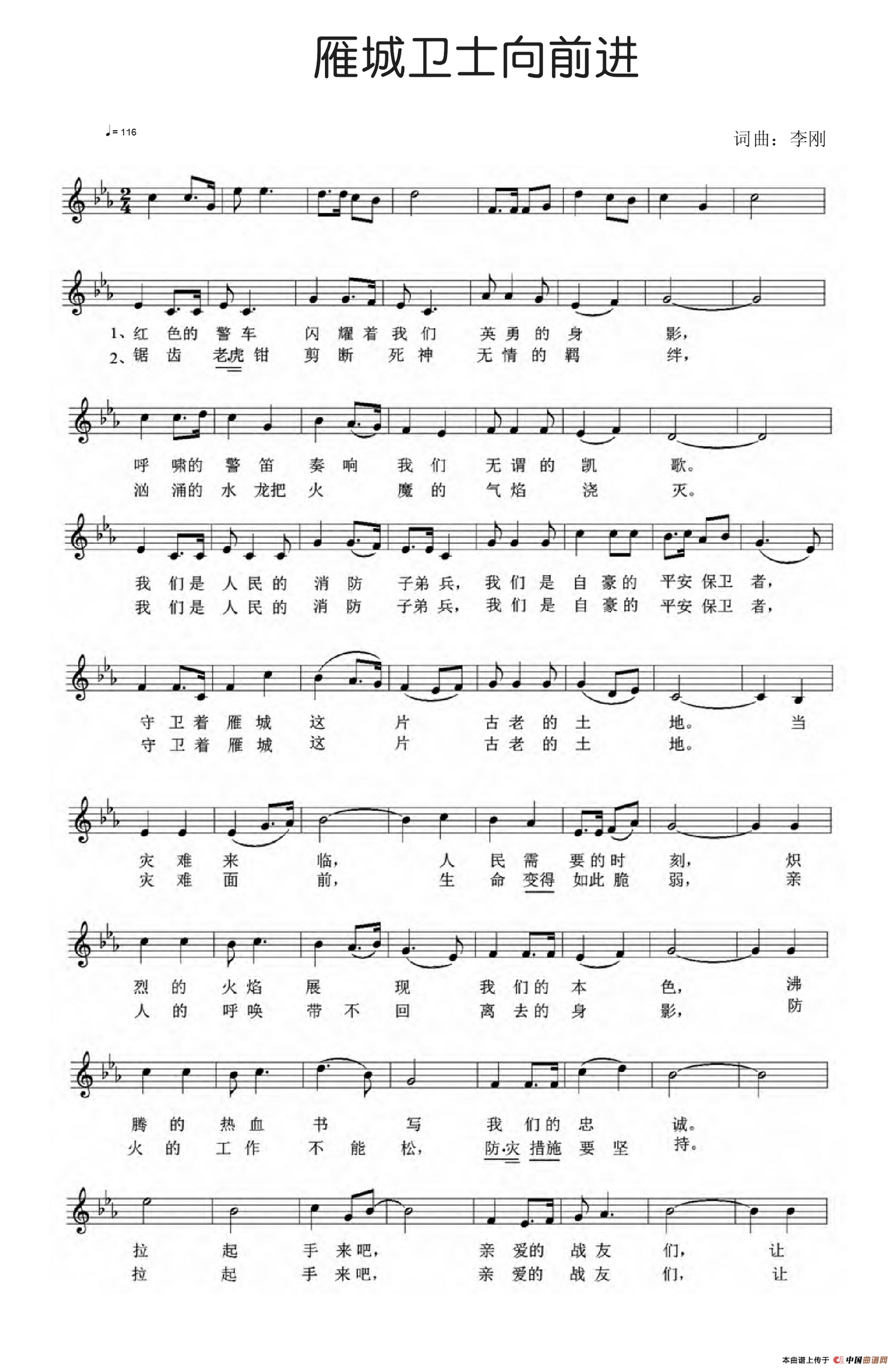关于《雁城卫士向前进》曲谱的评论