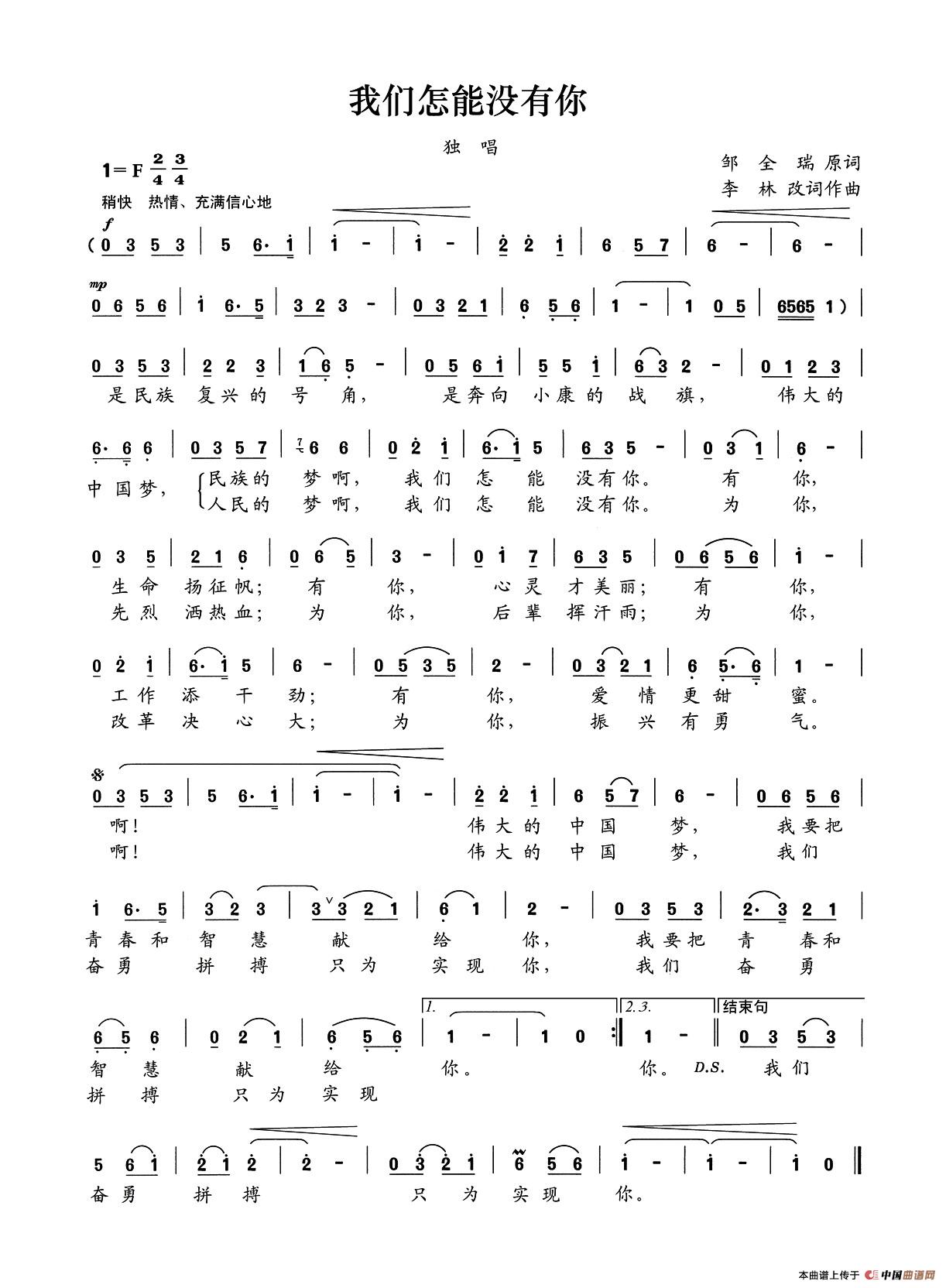 致谢:《中国曲谱网》衷心感谢作者老师馈赠原版歌谱!