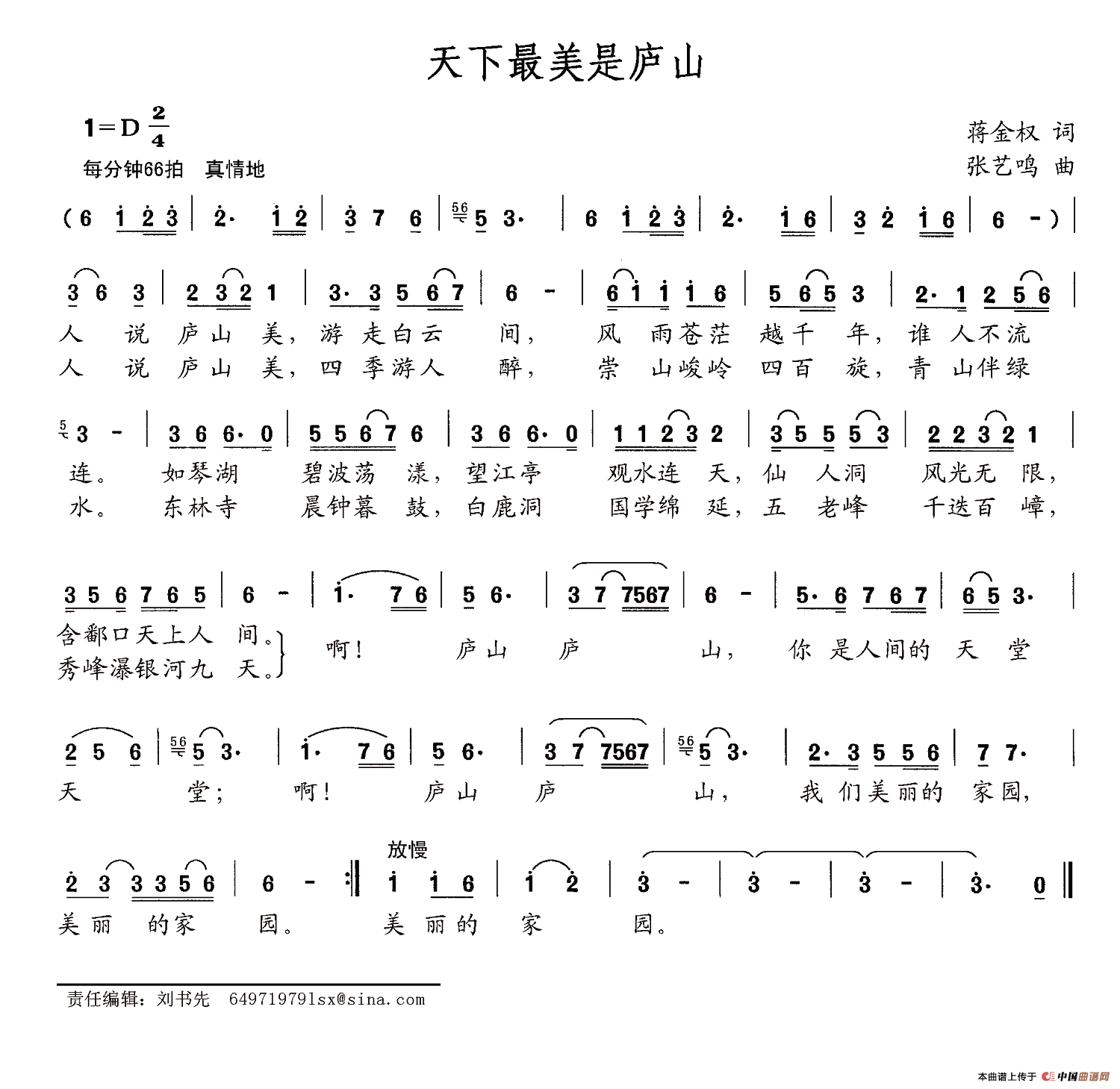 关于《天下最美是庐山》曲谱的评论