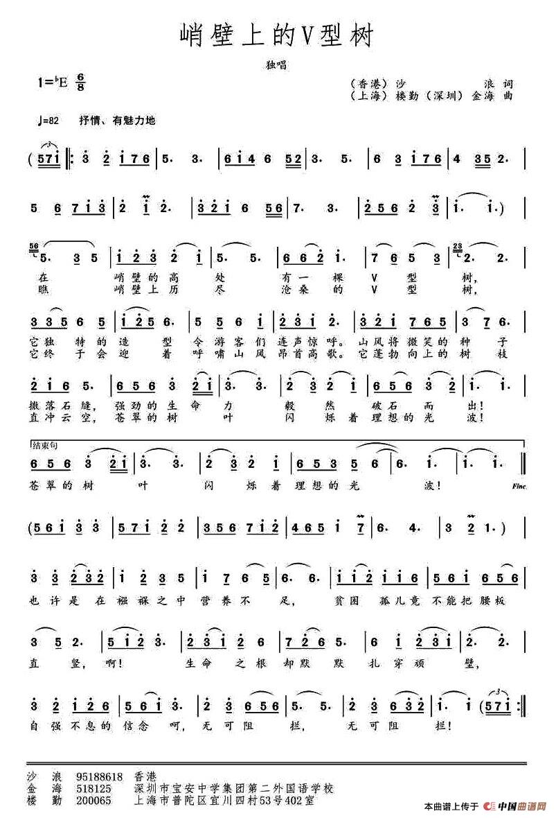 关于《峭壁上的v型树》曲谱的评论