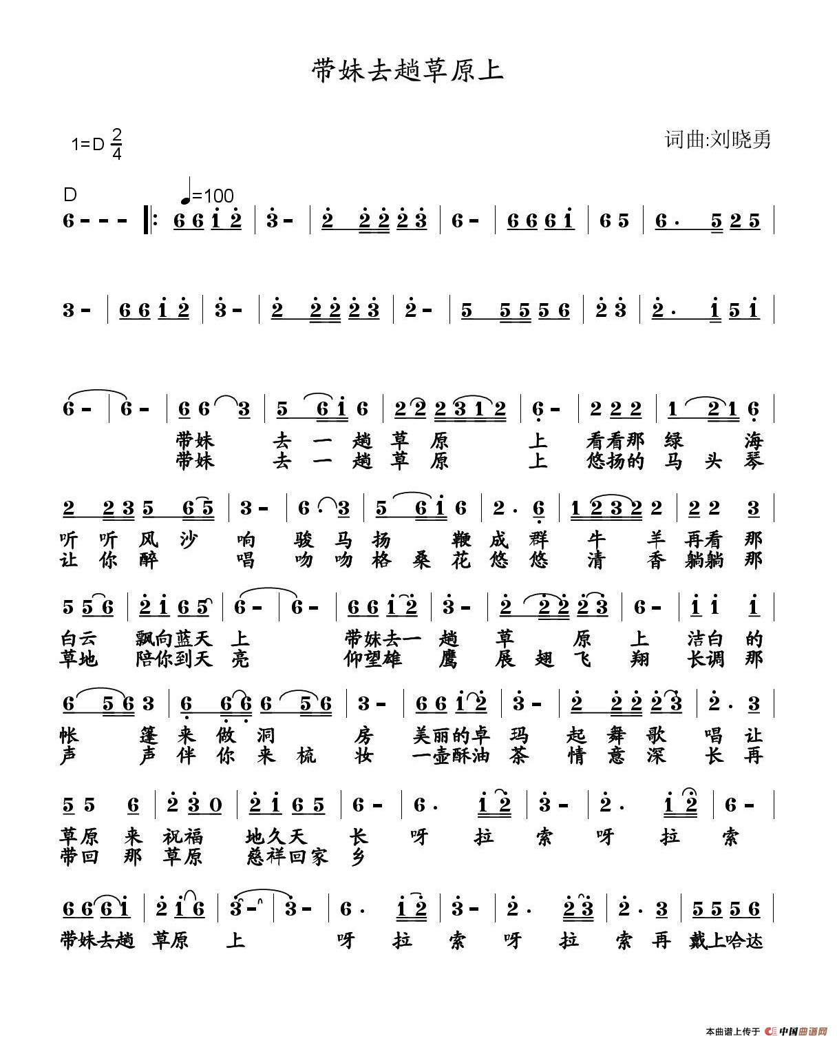 关于《带妹去趟草原上》曲谱的评论