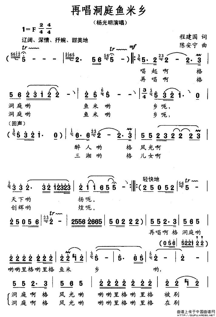 关于《再唱洞庭鱼米乡》曲谱的评论