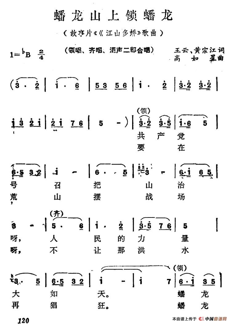 关于《蟠龙山上锁蟠龙》曲谱的评论