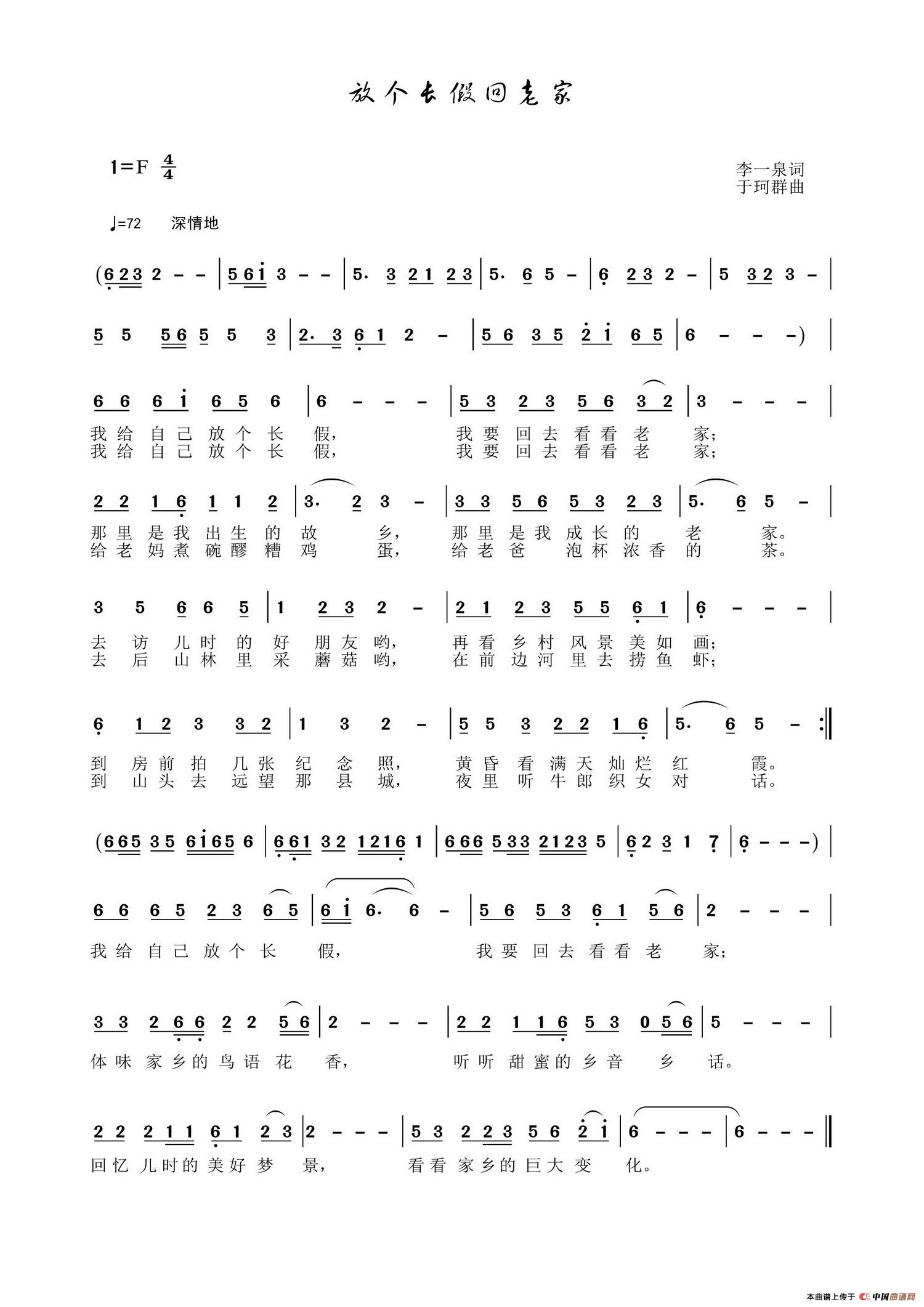 关于《放个长假回老家》曲谱的评论