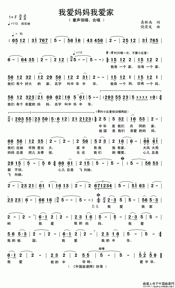 我爱我家哟我爱我的妈妈。我爱我的祖国,我爱我的中华。