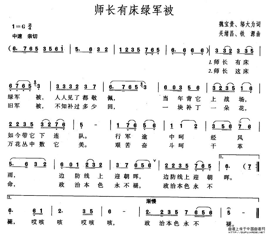 关于《师长有床绿军被》曲谱的评论