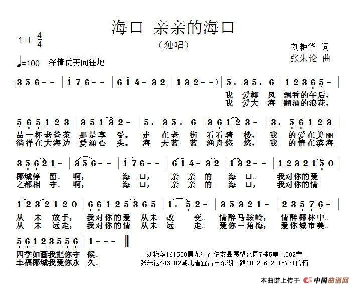关于《海口 亲亲的海口》曲谱的评论