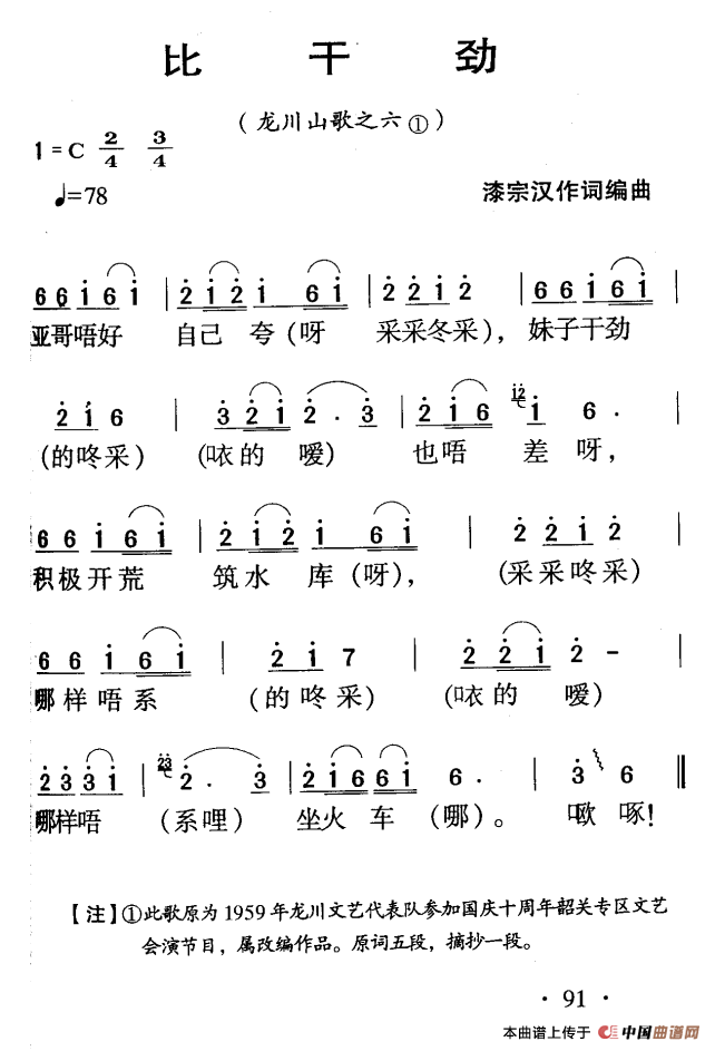 关于《河源民歌:比干劲》曲谱的评论