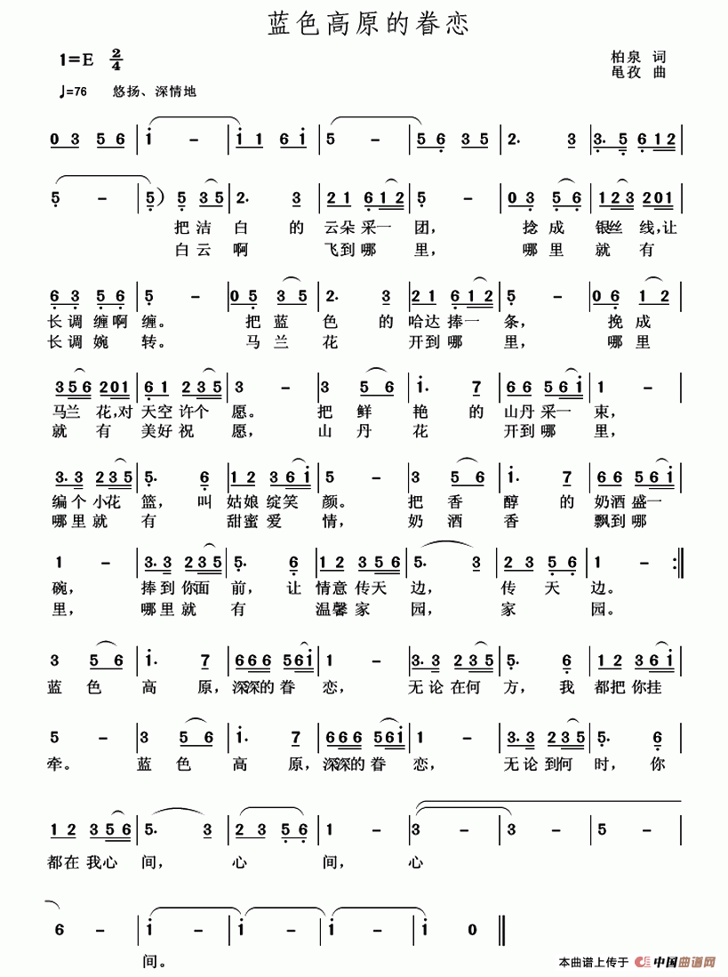 关于《蓝色高原的眷恋》曲谱的评论