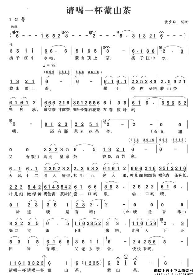关于《请喝一杯蒙山茶》曲谱的评论