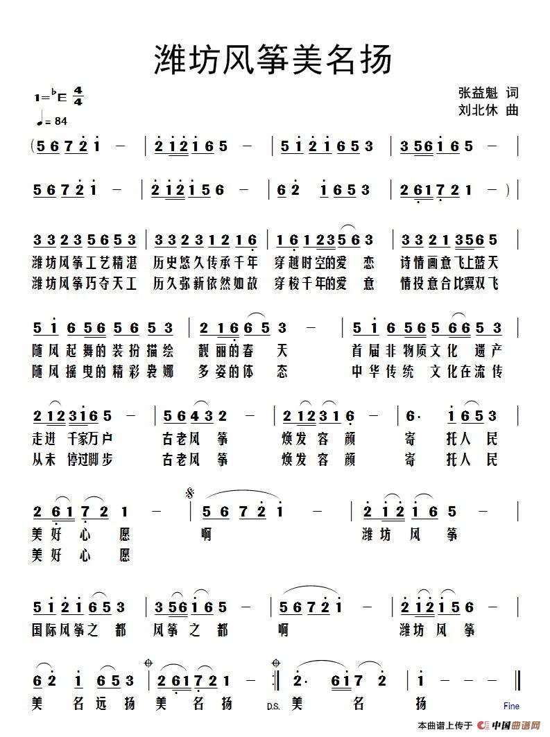 词作者张益魁应邀为潍坊市举办的“第36届潍坊国际风筝会”创作的会歌,谨以此歌献给潍坊国际风筝会,献给爱好传统文化的人们。