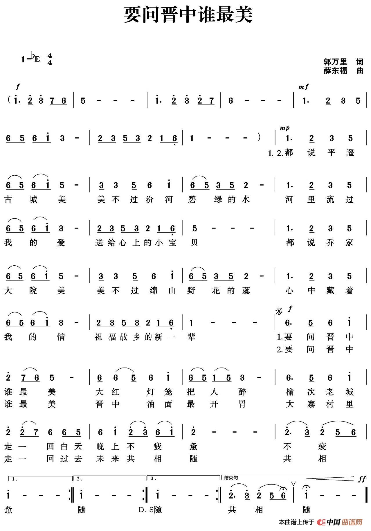 《要问晋中谁最美》文本歌词