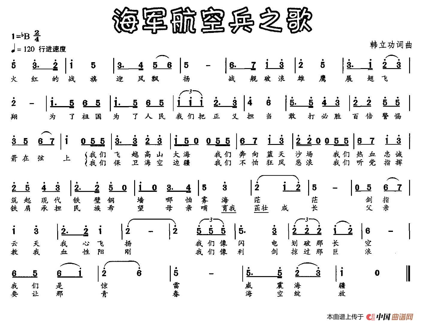 海军航空兵之歌(韩立功 词曲)