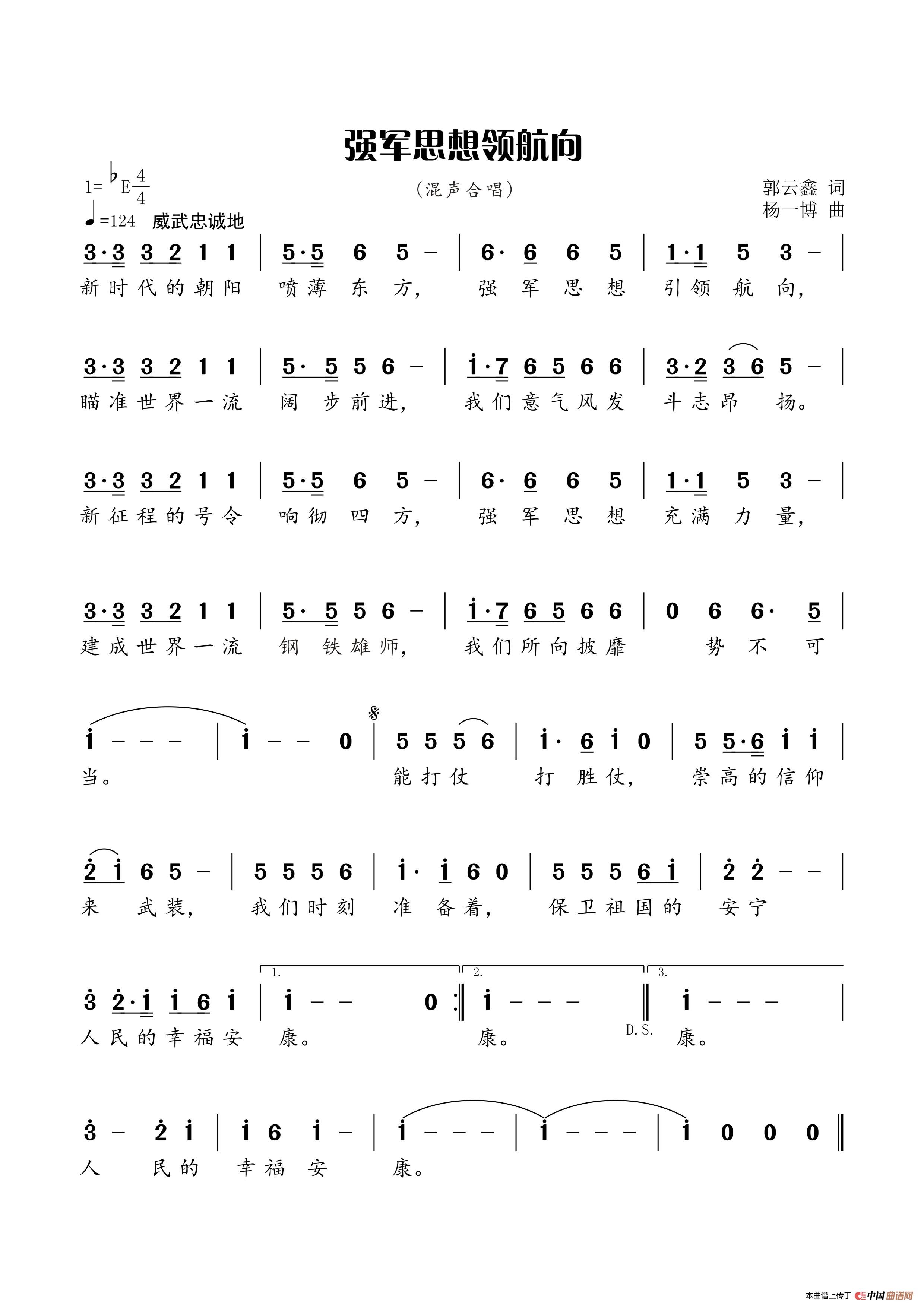 关于《强军思想领航向》曲谱的评论