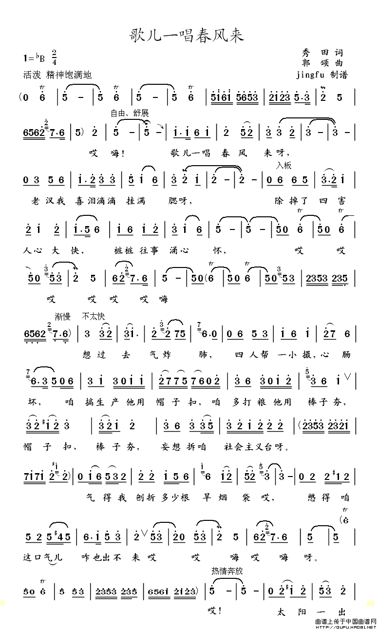 关于《歌儿一唱春风来》曲谱的评论