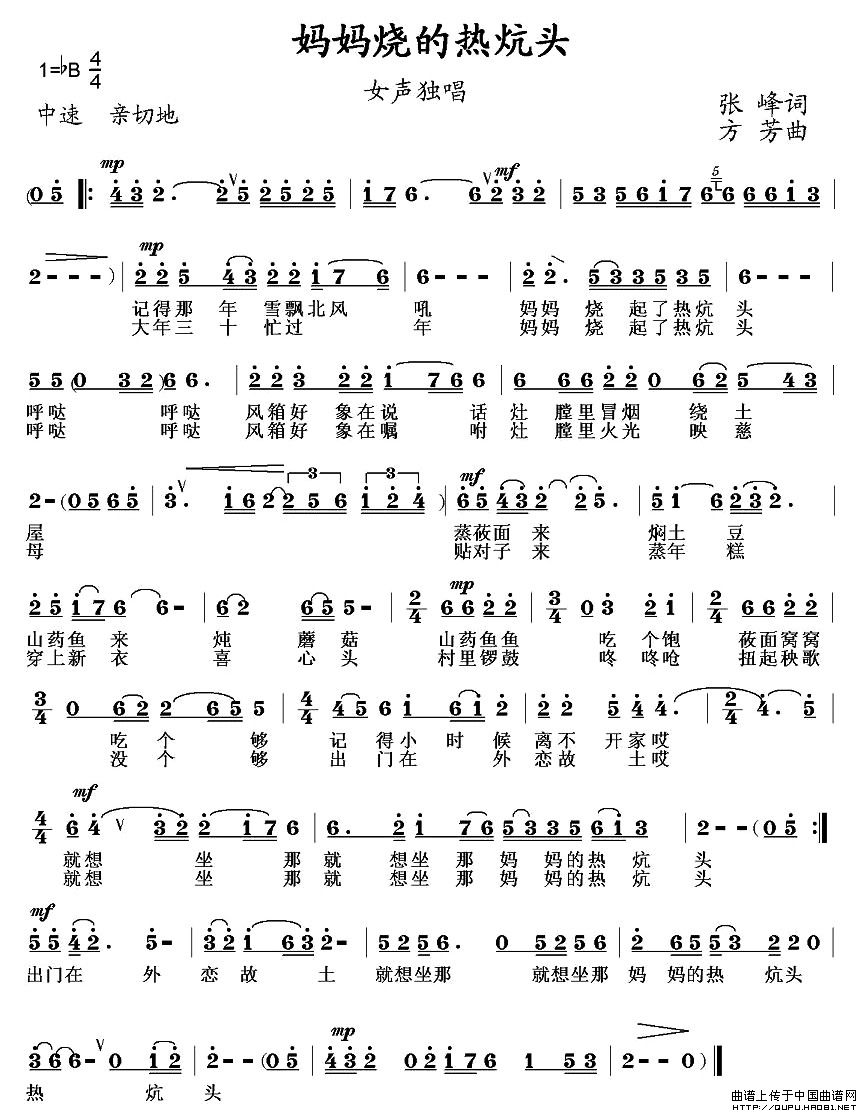 关于《妈妈烧的热炕头》曲谱的评论