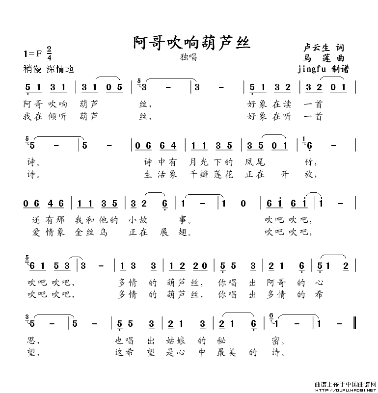 关于《阿哥吹响葫芦丝》曲谱的评论