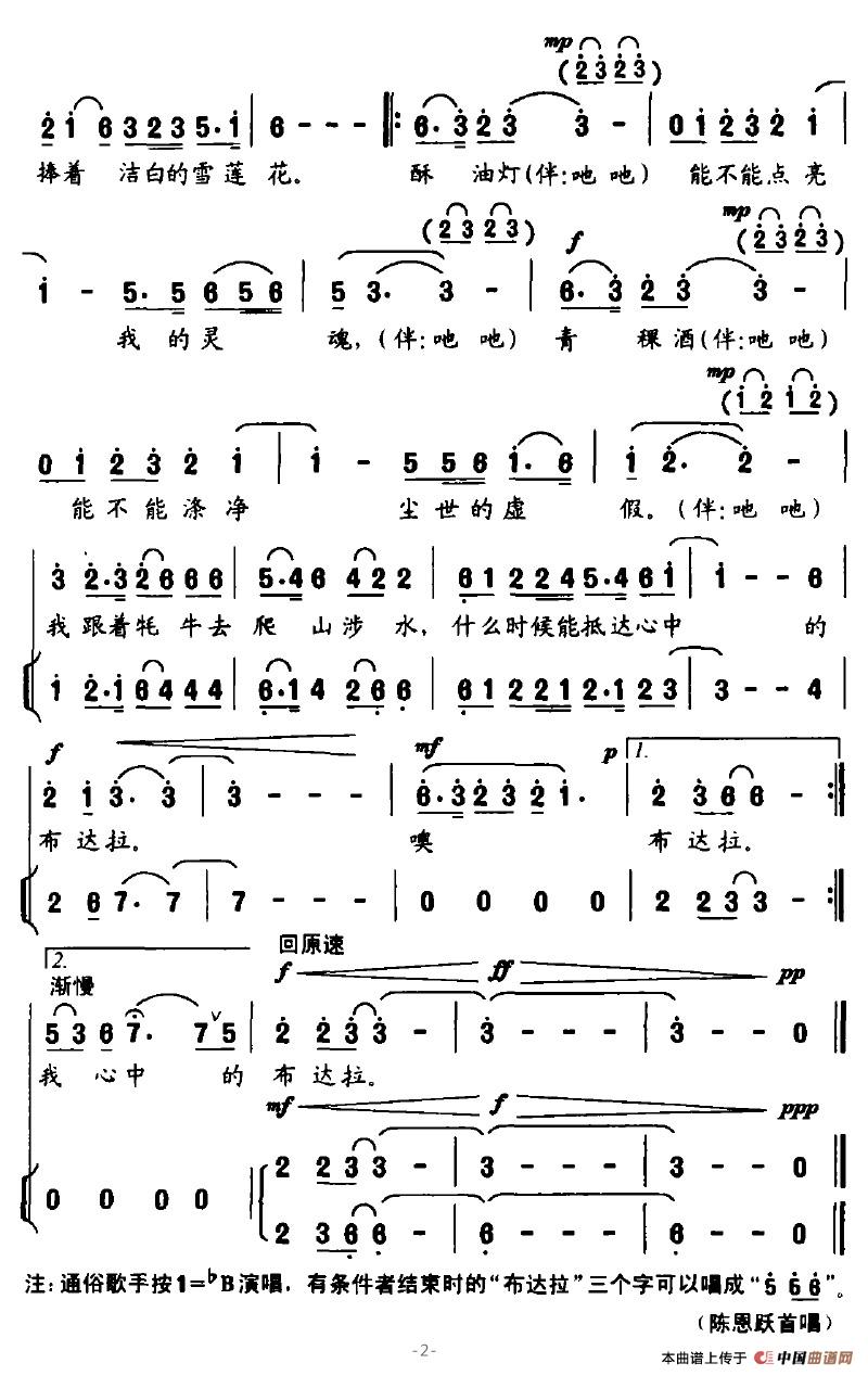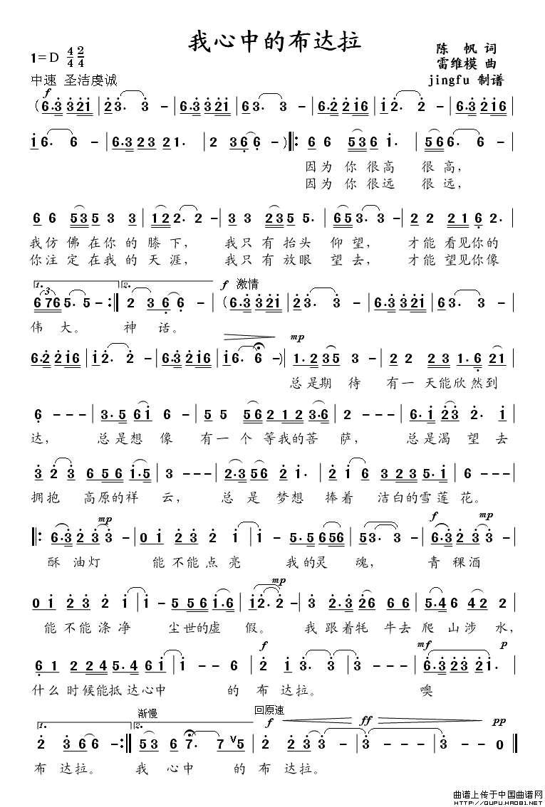 关于《我心中的布达拉》曲谱的评论