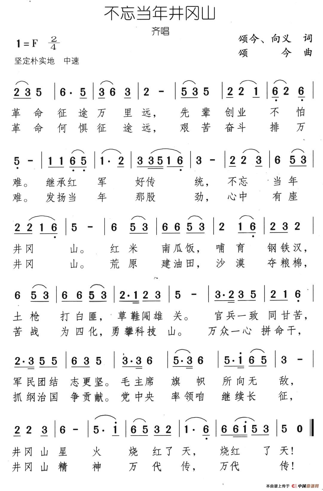 关于《不忘当年井冈山》曲谱的评论