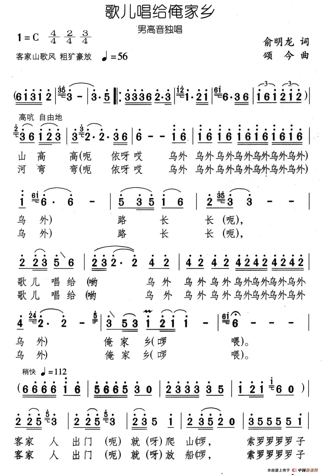 致谢:《中国曲谱网》衷心感谢作者老师馈赠原版歌谱!
