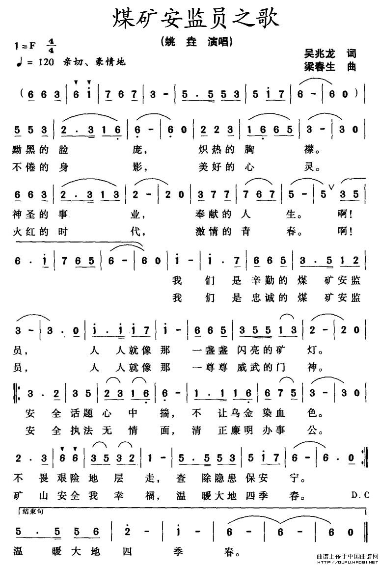 关于《煤矿安监员之歌》曲谱的评论