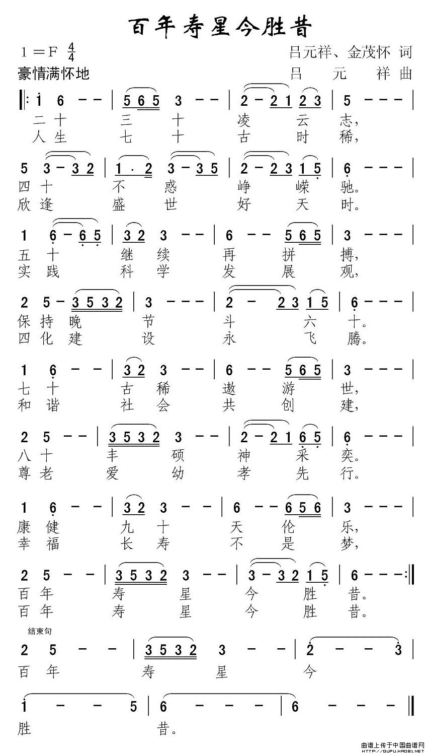关于《百岁寿星今胜昔》曲谱的评论