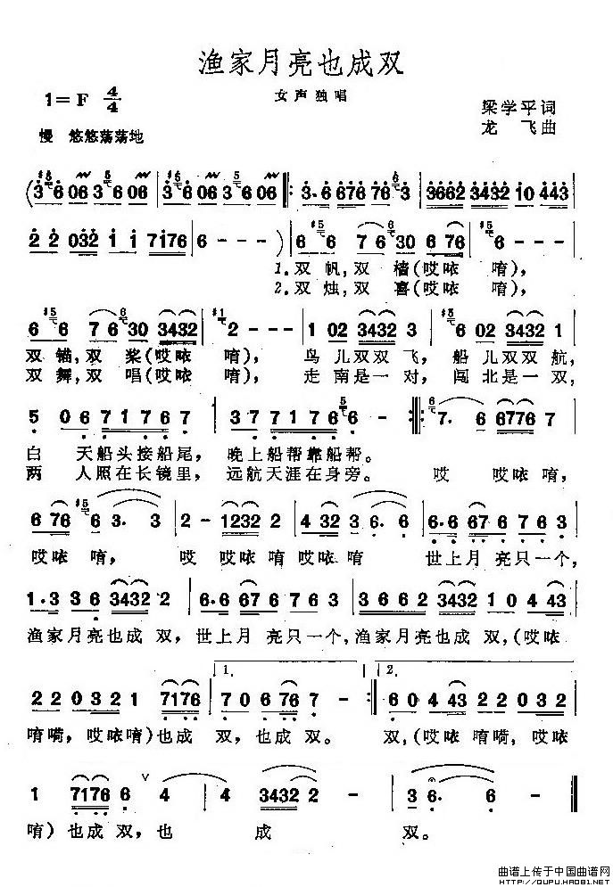 关于《渔家月亮也成双》曲谱的评论