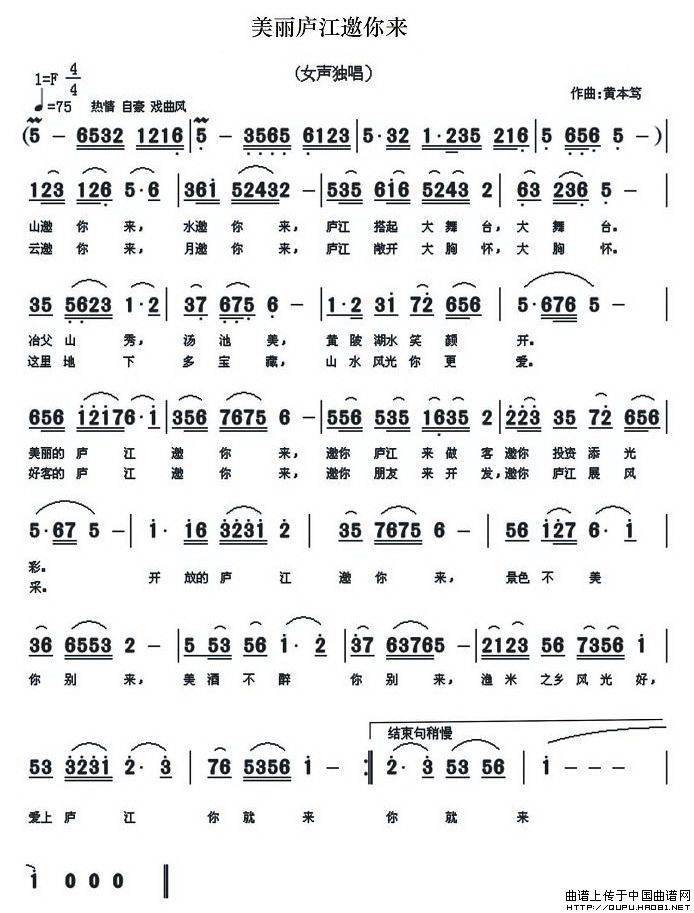 关于《美丽庐江邀你来》曲谱的评论