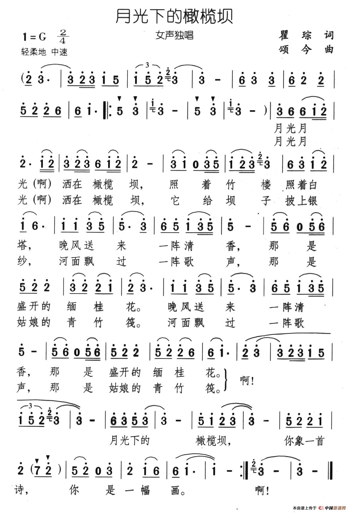 致谢:《中国曲谱网》衷心感谢作者老师馈赠原版歌谱!