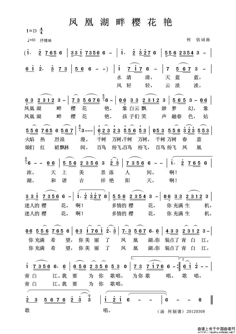 作词:何佶 作曲:何佶 格式:简谱 来源:艾曲人制谱 上传:艾曲人