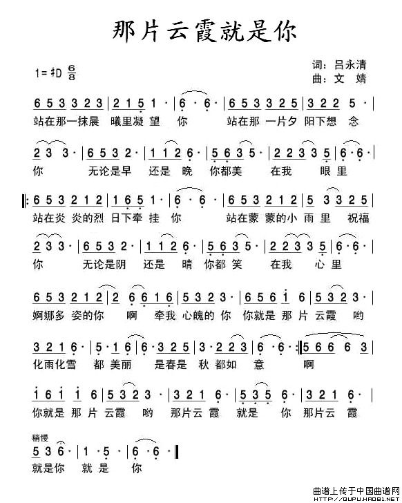 关于《那片云霞就是你》曲谱的评论